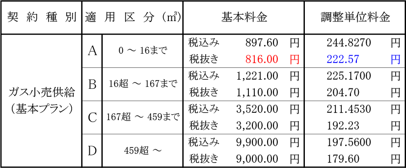 令和8年1月検針分に適用される料金表(消費税率 10%)