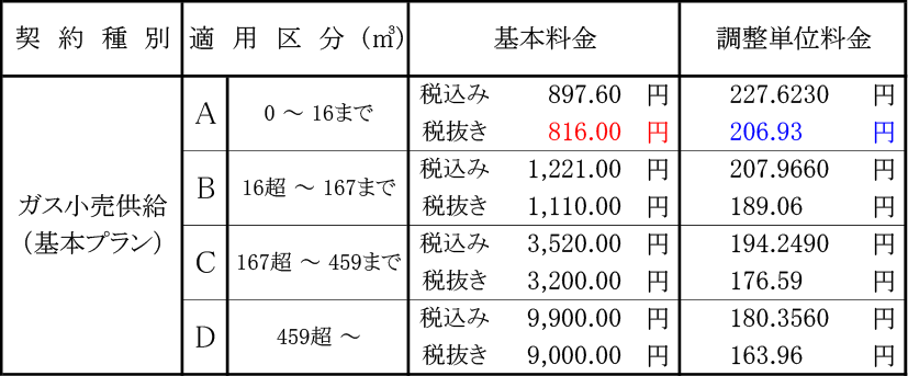 ・令和8年3月 45MJ料金表