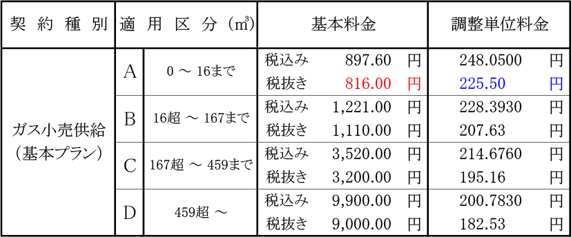 令和8年5月検針分に適用される料金表(消費税率 10%)